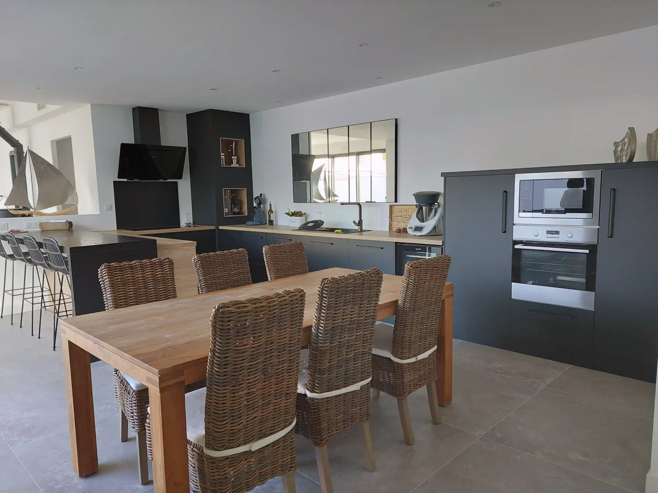 Cette rénovation à l’île de Ré transforme un logement ancien en un espace de vie moderne, lumineux et raffiné. Les interventions ont permis de repenser