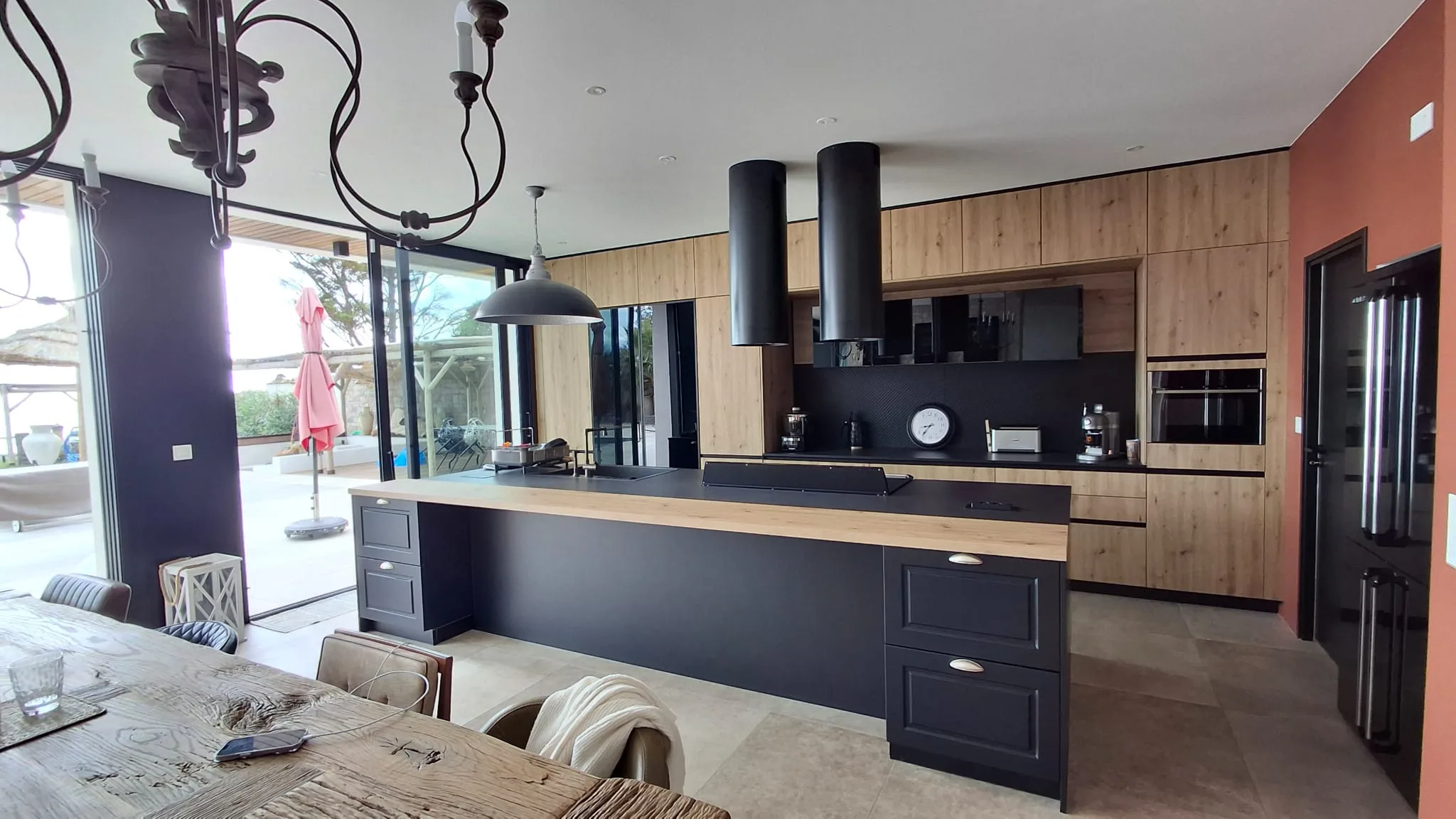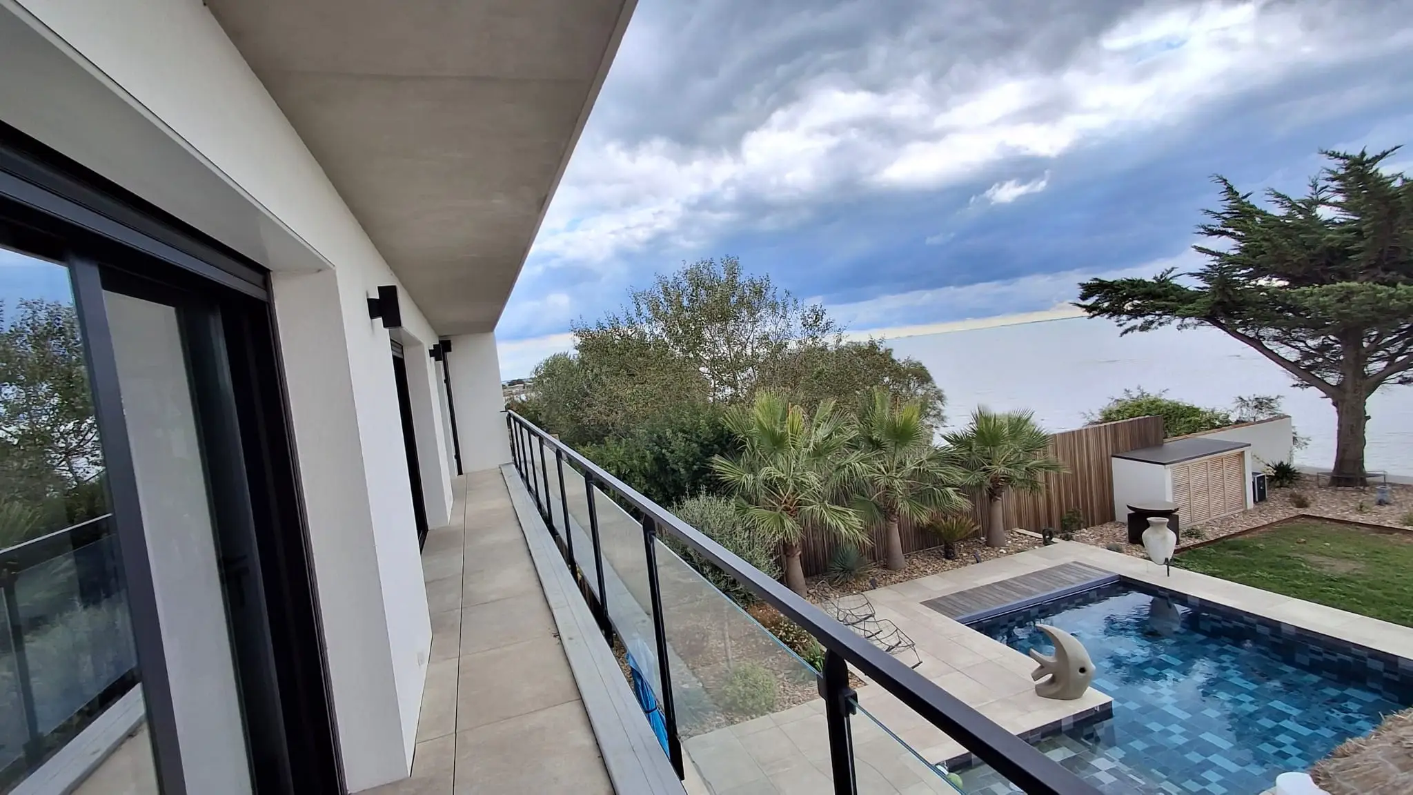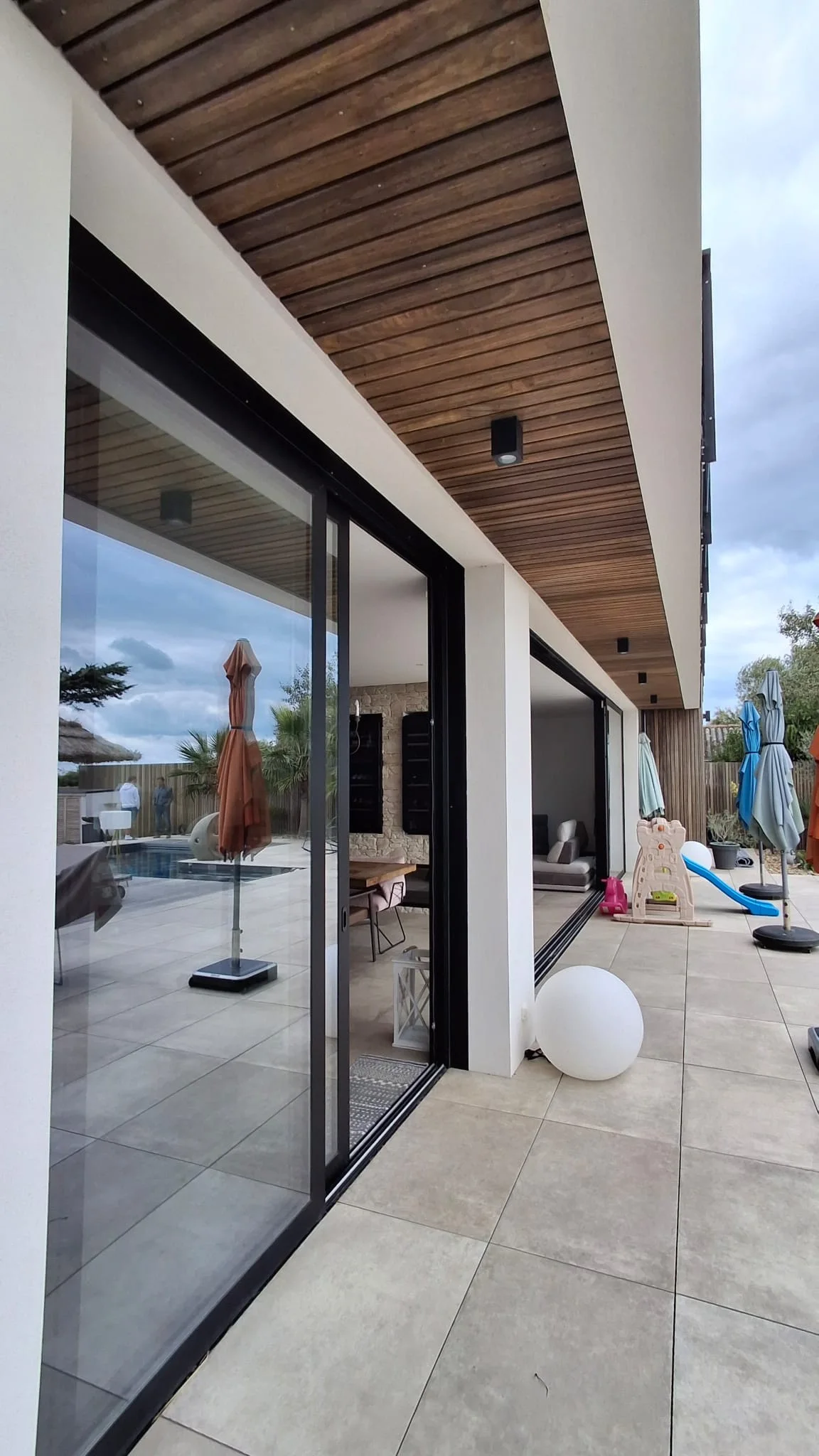 Cette construction d’une maison en Charente-Maritime se distingue par une architecture contemporaine pensée pour magnifier son environnement littoral. Les lignes épurées du bâti, les façades immaculées et les menuiseries aluminium XXL ouvrent généreusement l’intérieur sur l’océan, créant une continuité naturelle entre les espaces de vie et l’extérieur. À l’intérieur, chaque détail a été soigneusement étudié : murs en parement de pierre, escalier graphique, cuisine sur mesure et matériaux nobles qui confèrent à l’ensemble une atmosphère chaleureuse et raffinée. La piscine paysagée, le vaste deck en bois et les aménagements extérieurs prolongent l’expérience, transformant la maison en véritable lieu de vie tourné vers la mer. Cette réalisation incarne l’équilibre parfait entre design contemporain, confort durable et élégance balnéaire.