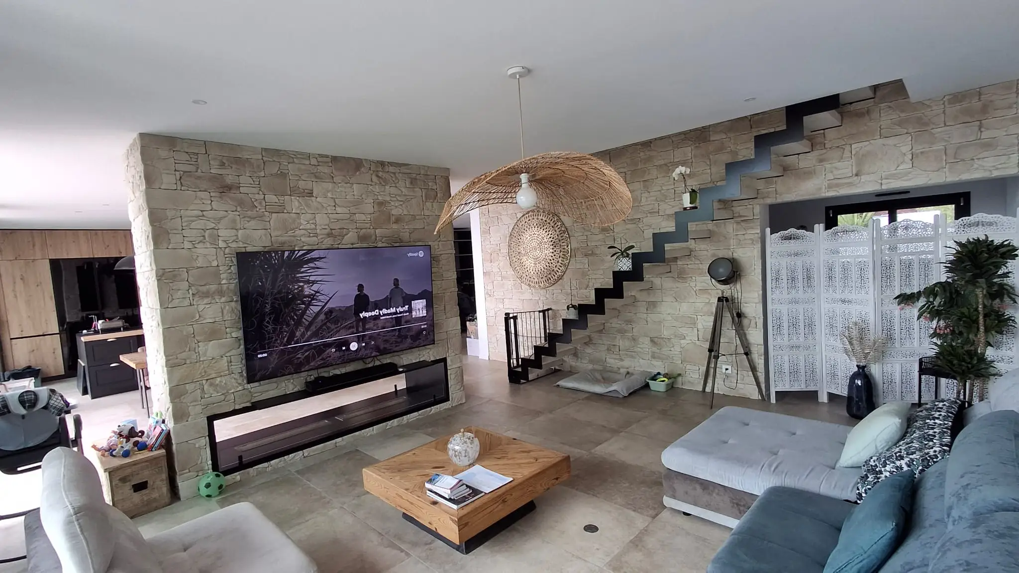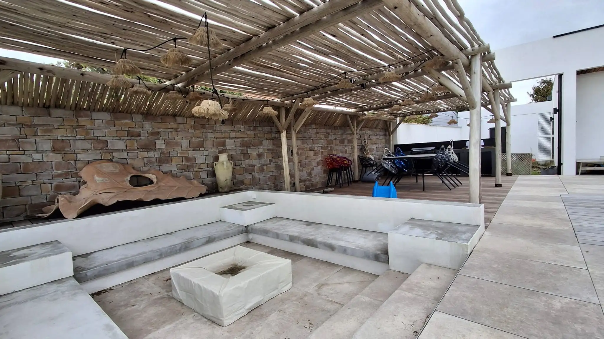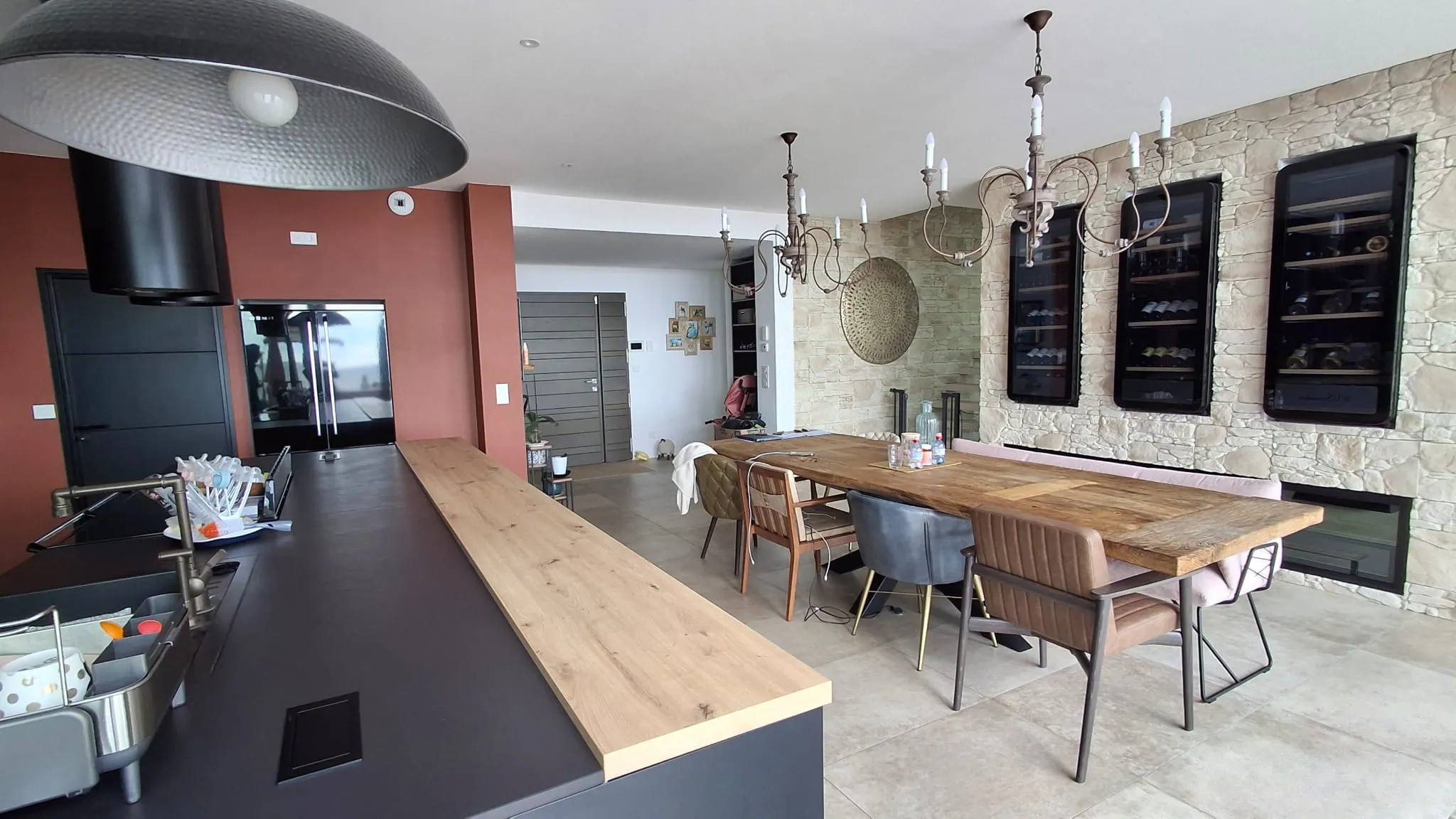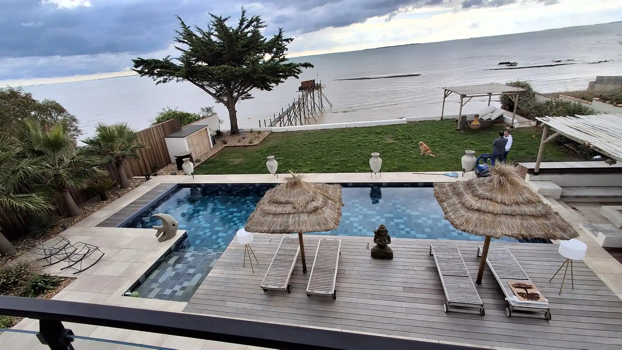 Cette construction d’une maison en Charente-Maritime se distingue par une architecture contemporaine pensée pour magnifier son environnement littoral. Les lignes épurées du bâti, les façades immaculées et les menuiseries aluminium XXL ouvrent généreusement l’intérieur sur l’océan, créant une continuité naturelle entre les espaces de vie et l’extérieur. À l’intérieur, chaque détail a été soigneusement étudié : murs en parement de pierre, escalier graphique, cuisine sur mesure et matériaux nobles qui confèrent à l’ensemble une atmosphère chaleureuse et raffinée. La piscine paysagée, le vaste deck en bois et les aménagements extérieurs prolongent l’expérience, transformant la maison en véritable lieu de vie tourné vers la mer. Cette réalisation incarne l’équilibre parfait entre design contemporain, confort durable et élégance balnéaire.