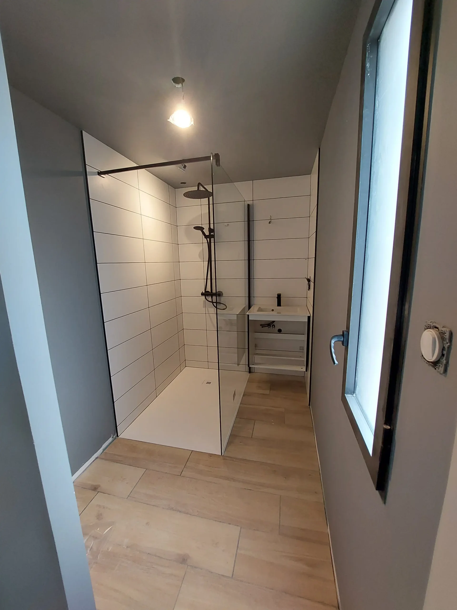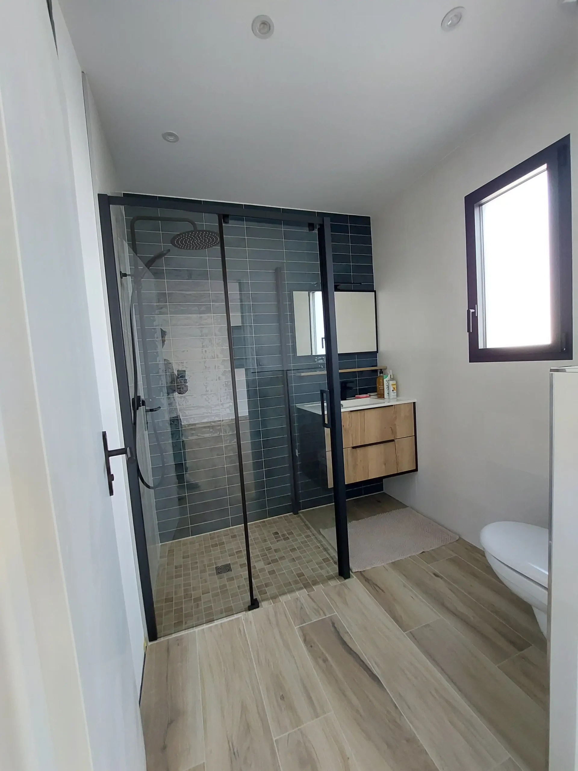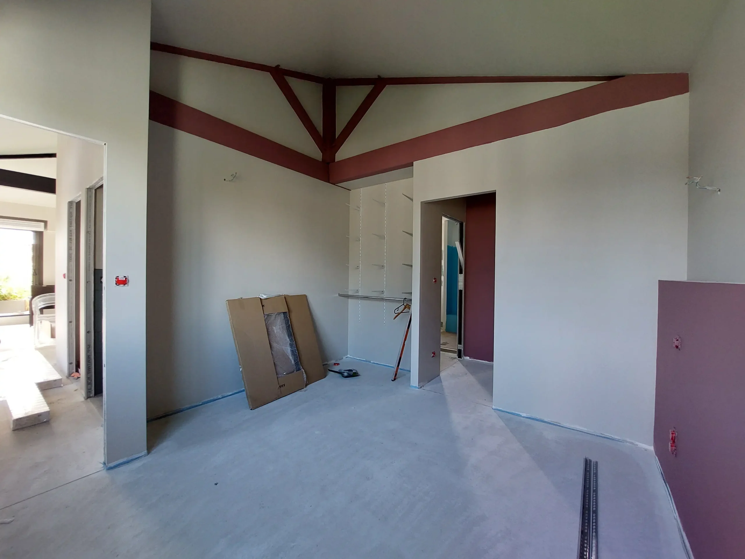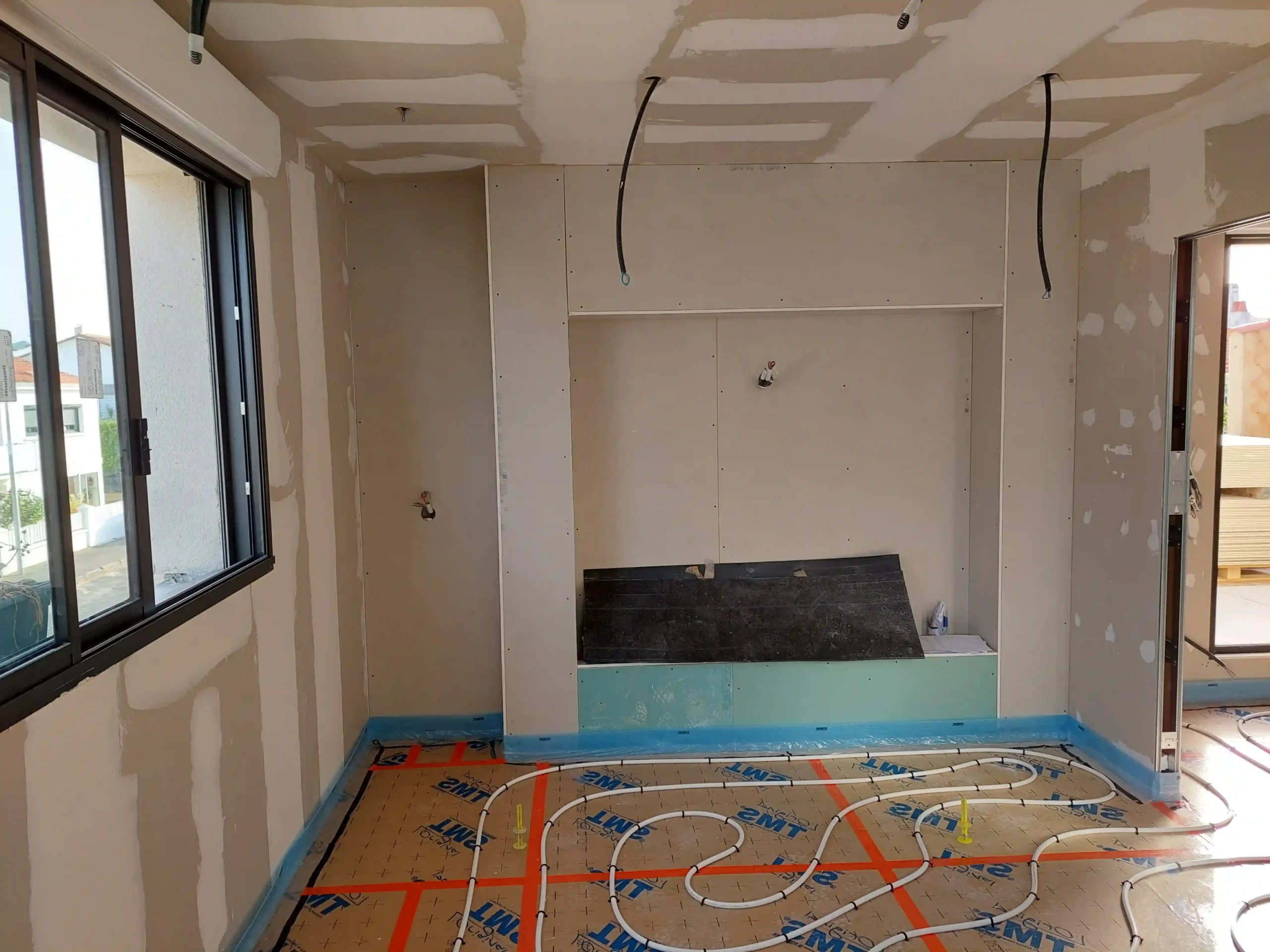 Cette construction d’une maison à Bourgneuf incarne une approche contemporaine du confort, conçue pour offrir des espaces lumineux et fonctionnels. La pièce de vie centrale,