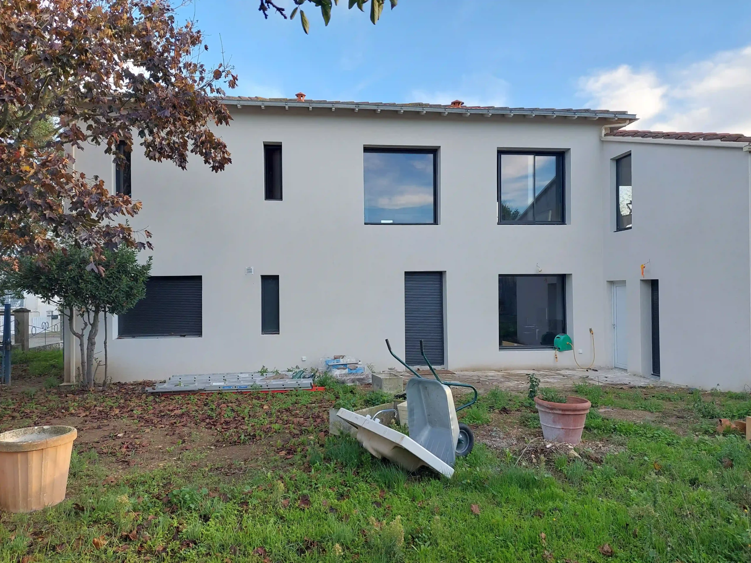 Cette réalisation à Périgny combine une extension contemporaine et une rénovation complète de la maison existante. Le projet a permis d’agrandir les volumes tout en